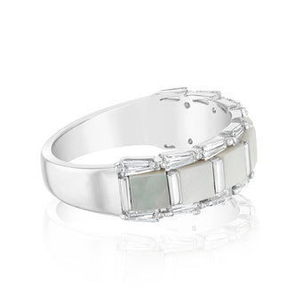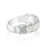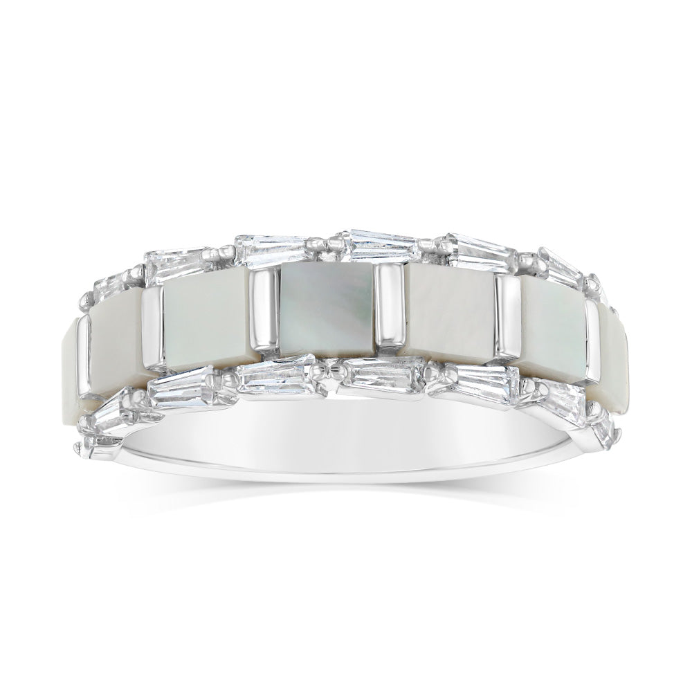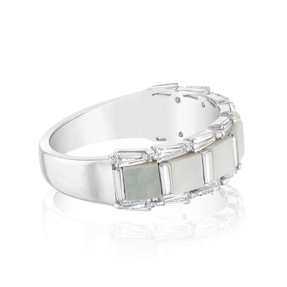 Sterling Silver Rhodium Plated White Shell Pearl Fancy Ring