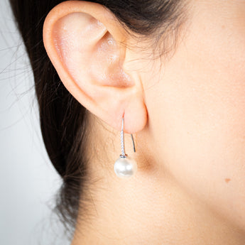Sterling Silver Rhodium Plated White Shell Pearl & Zirconia Earrings
