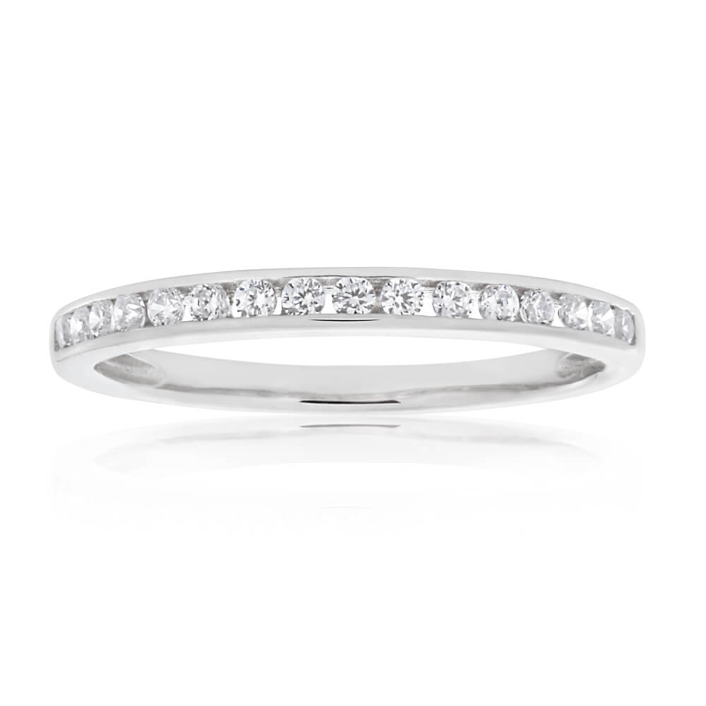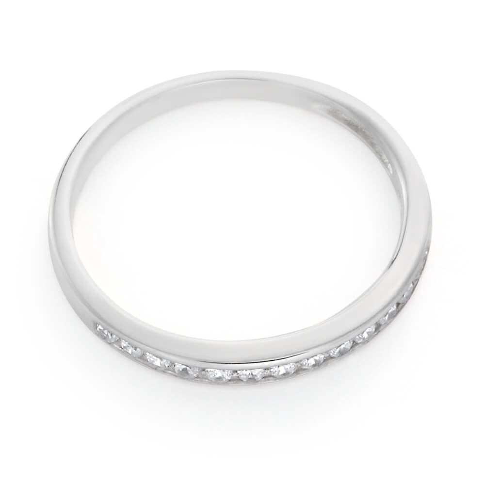 Sterling Silver Rhodium Plated Zirconia Channel Ring