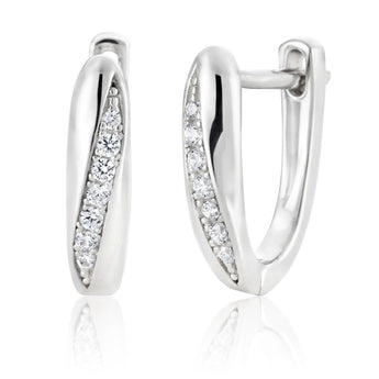 Sterling Silver Rhodium Plated Zirconia Fancy Twist Huggie Earrings