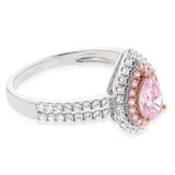 Sterling Silver Rhodium & Rose Gold Plated White & Pink CZ Pear Ring