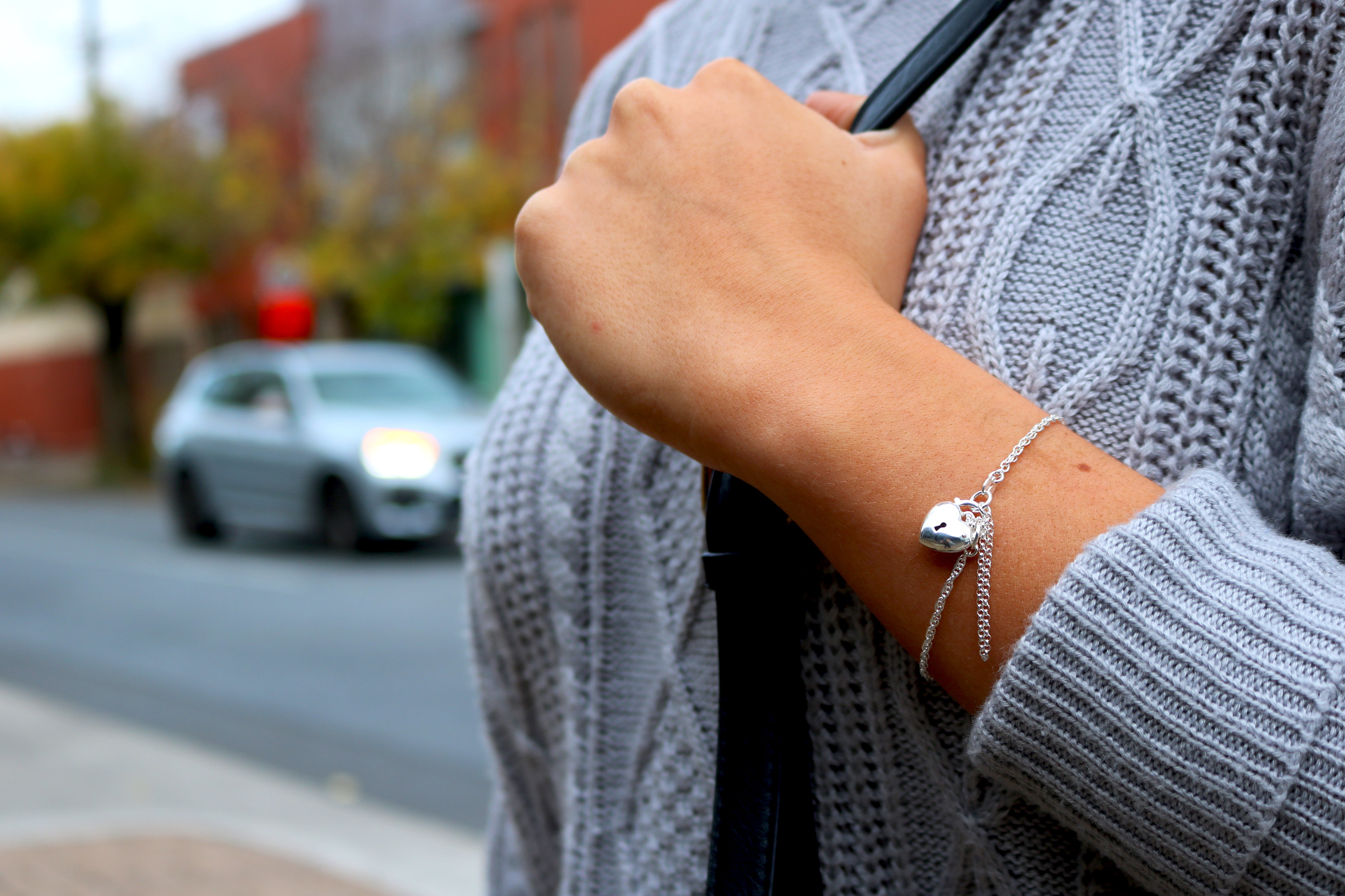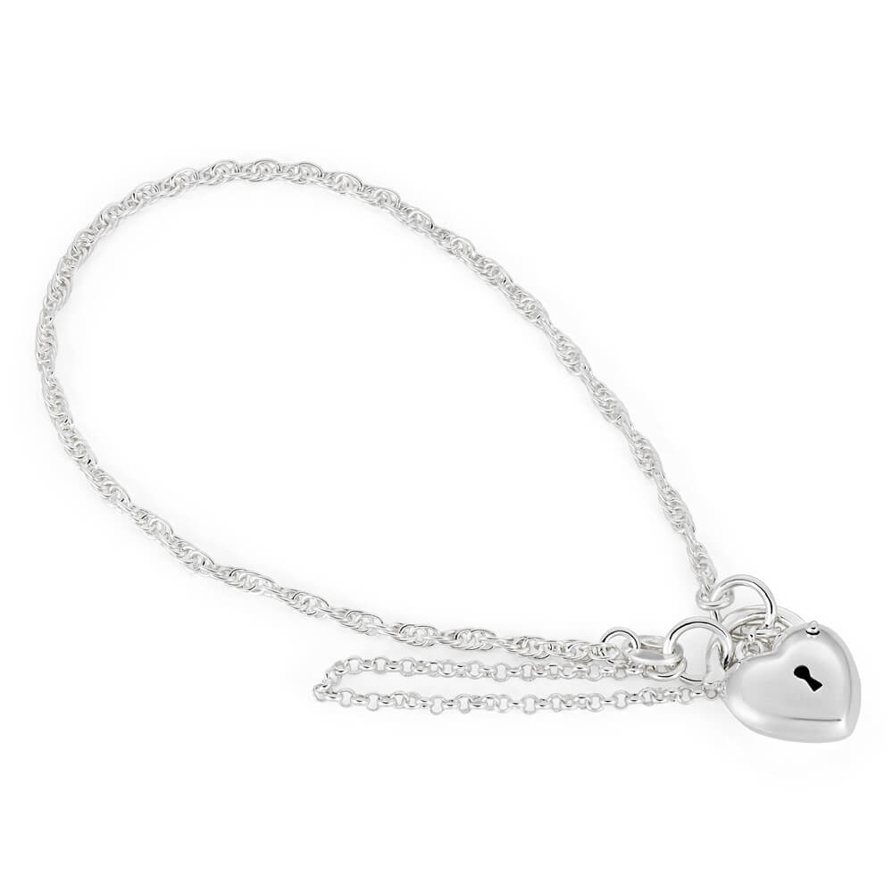 Sterling Silver Rope Puff Heart Padlock Bracelet