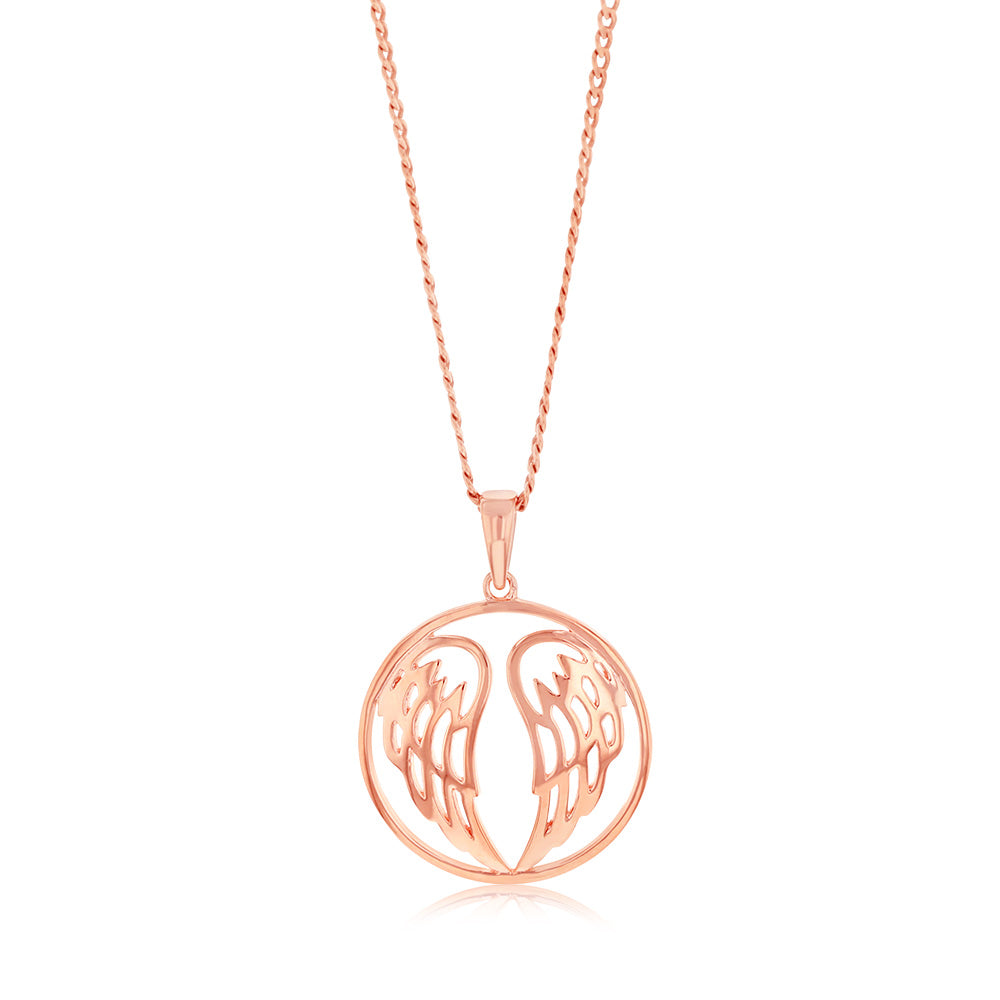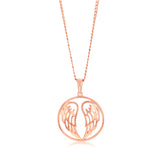 Sterling Silver Rose Gold Plated Angel Wings Round Pendant