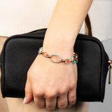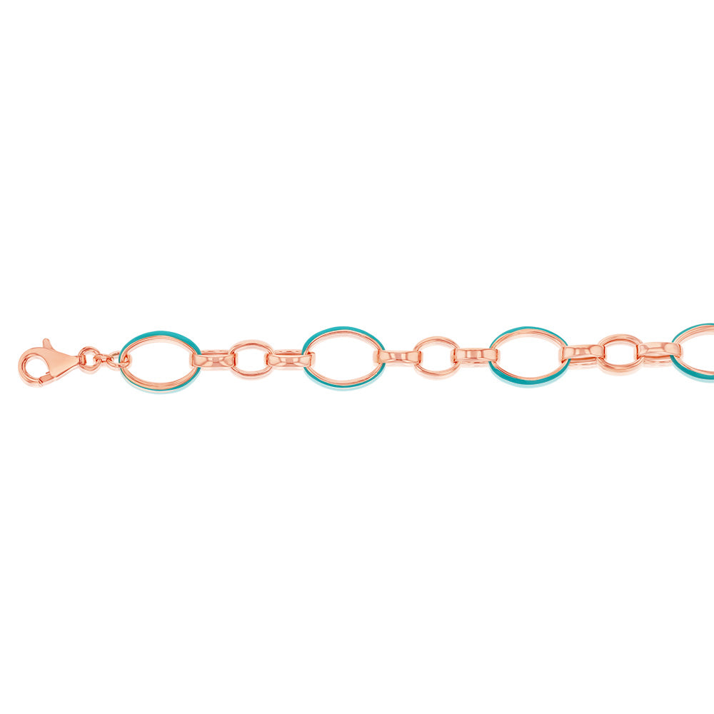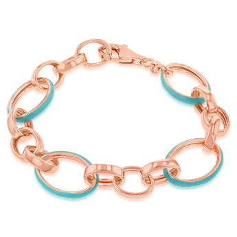 Sterling Silver Rose Gold Plated Blue Eanmel Fancy 19cm Bracelet