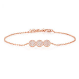 Sterling Silver Rose Gold Plated Cubic Zirconia Pave Trio Disc Bracelet 16+3cm