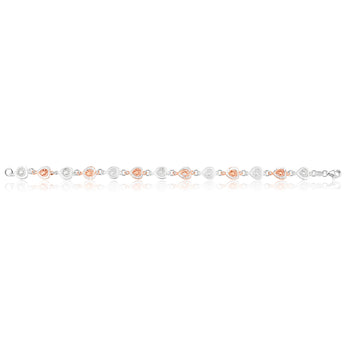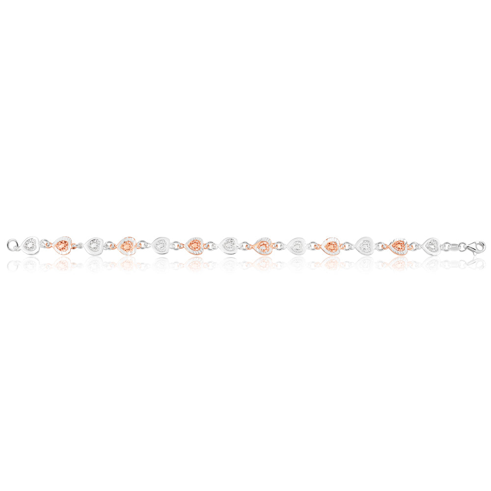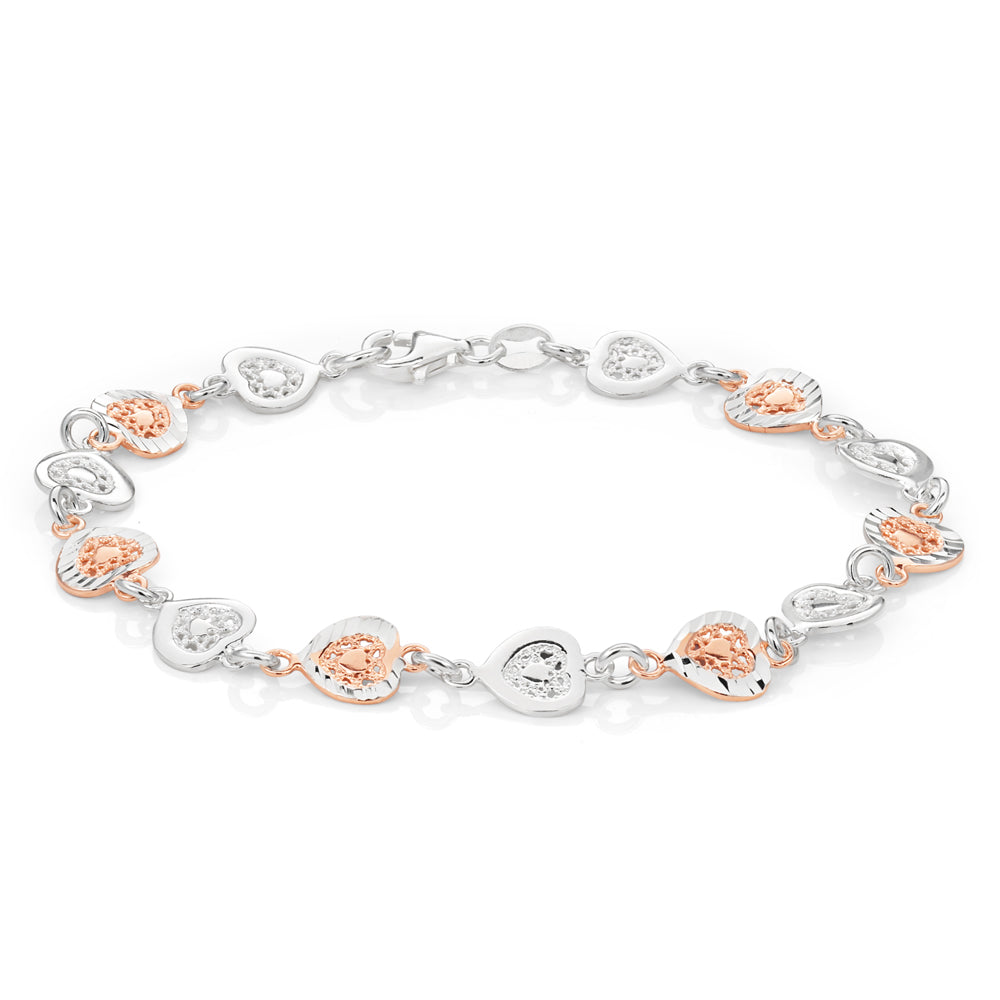 Sterling Silver Rose Gold Plated Fancy Heart Bracelet 19cm