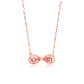 Sterling Silver Rose Gold Plated Morganite Pear Cubic Zirconia Infinity Pendant On Chain