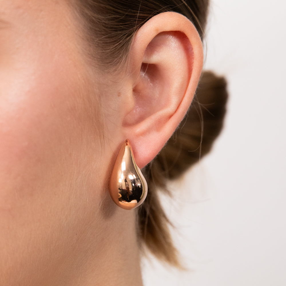 Sterling Silver Rose Gold Plated Polished Tear Drop Stud Earrings