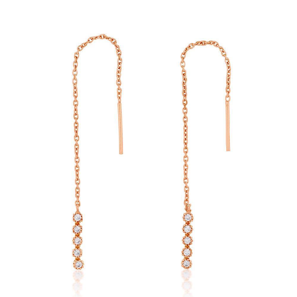 Sterling Silver Rose Gold Plated Tiny Flowers Threader Earrings