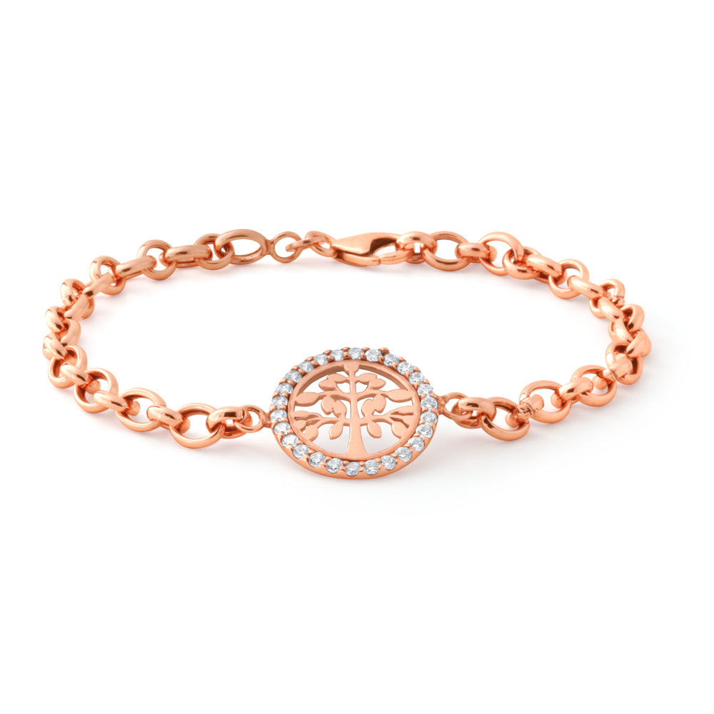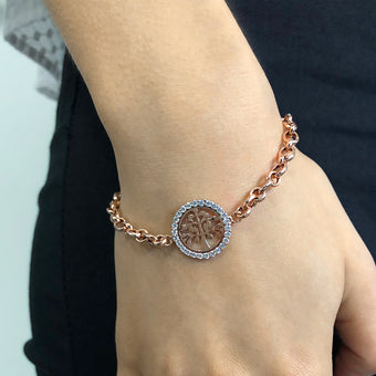 Sterling Silver Rose Plated 19cm Fancy Zirconia Disc on Belcher Bracelet
