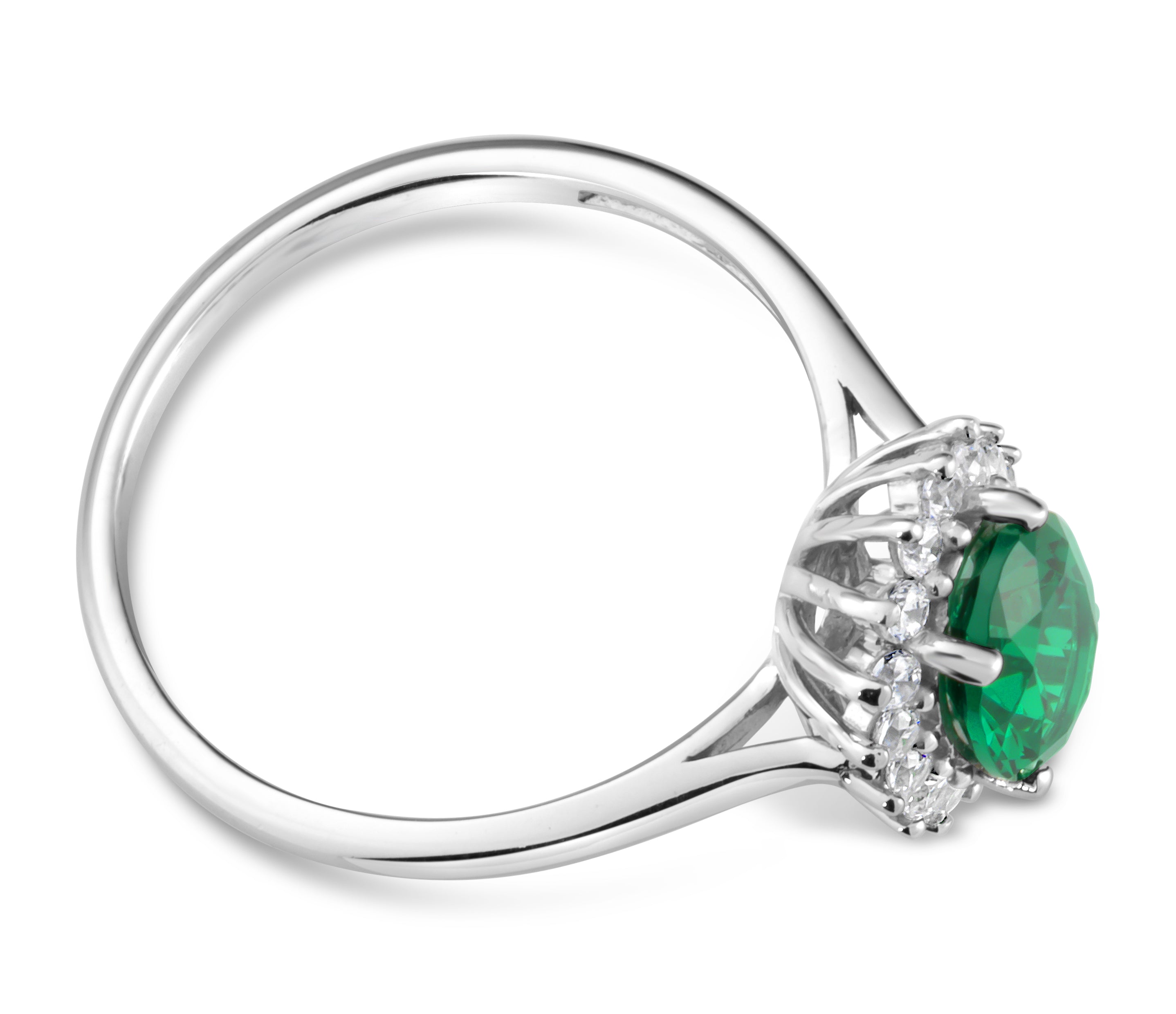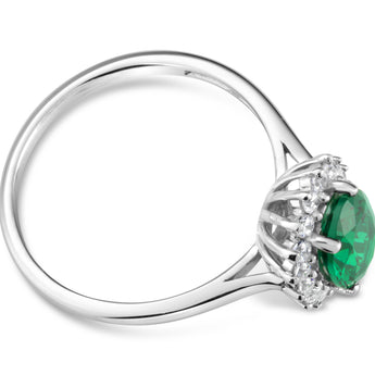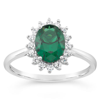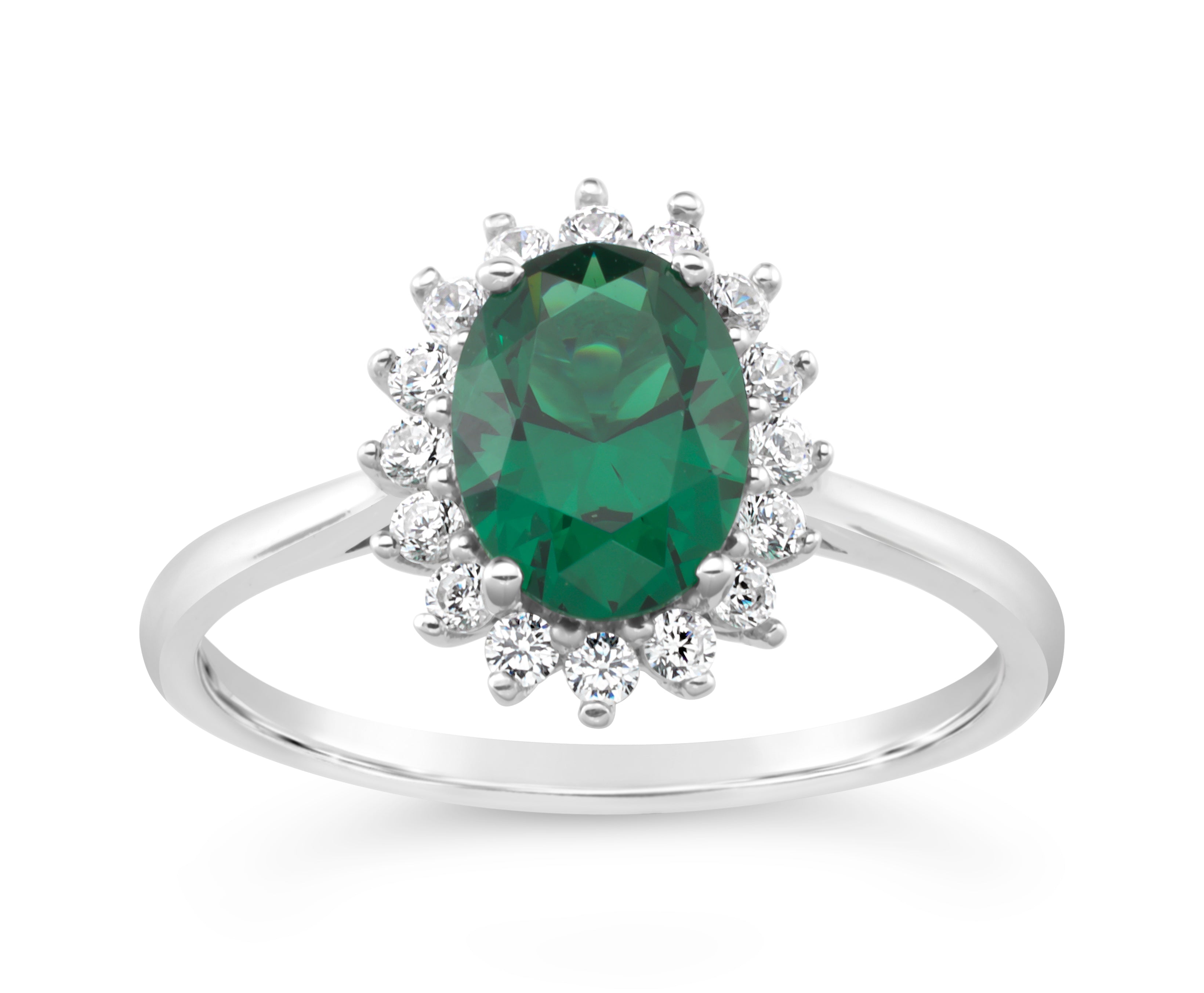 Sterling Silver Simulated Emerald and Zirconia Ring