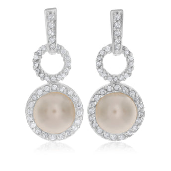 Sterling Silver Simulated Pearl and Zirconia Fancy Drop Earrings