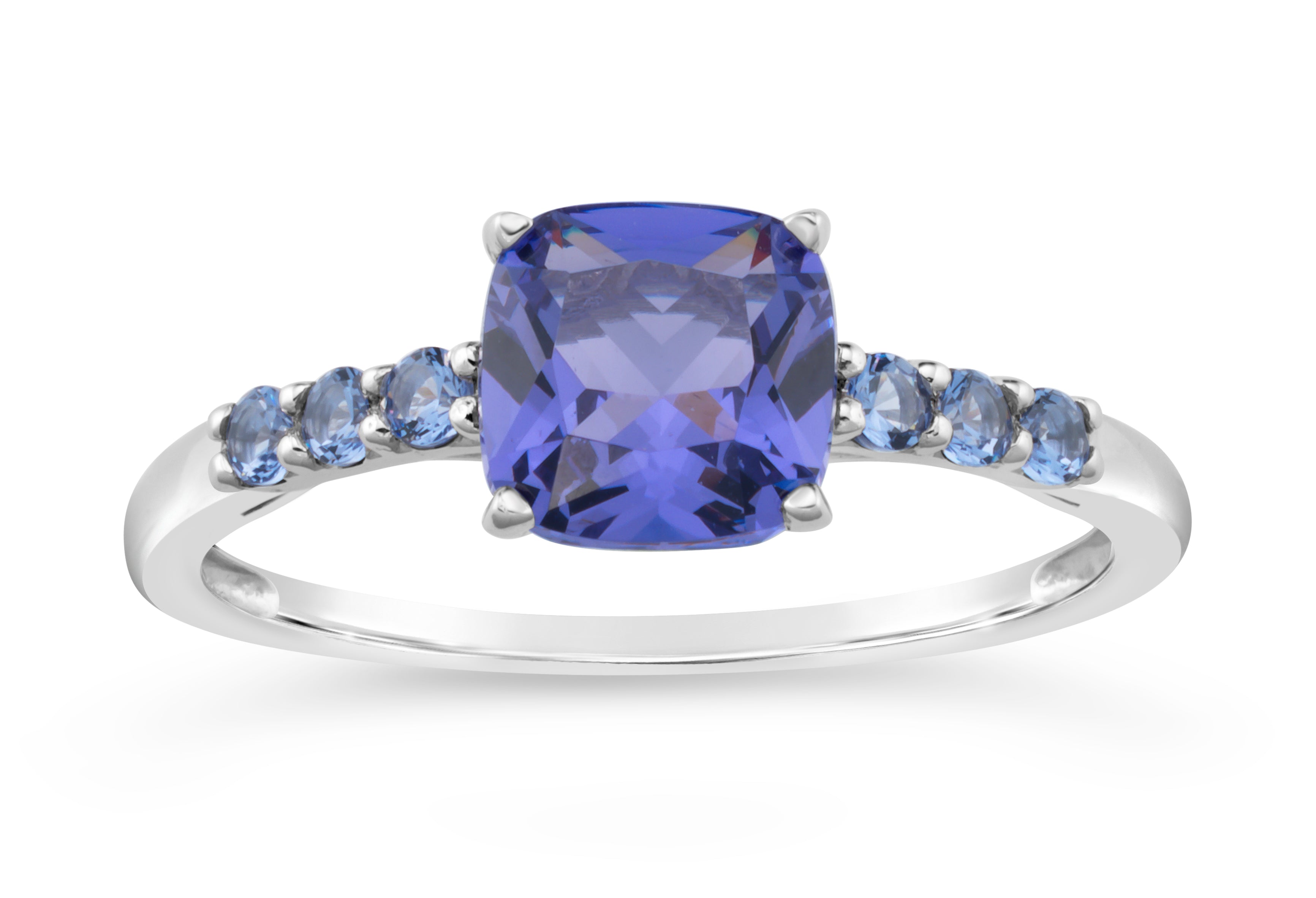 Sterling Silver Simulated Tanzanite and Zirconia Ring