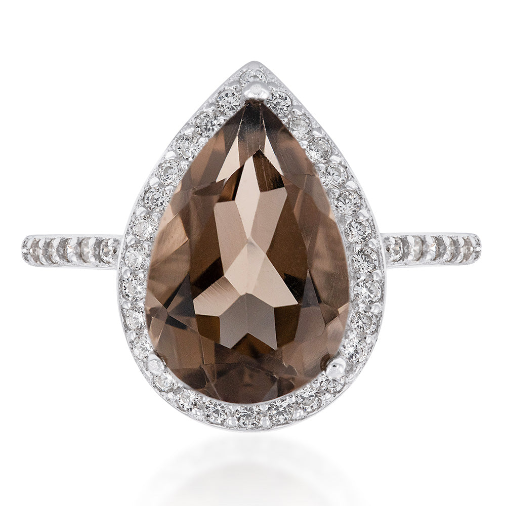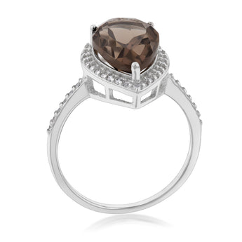 Sterling Silver Smokey Quartz and Zirconia Pear Ring