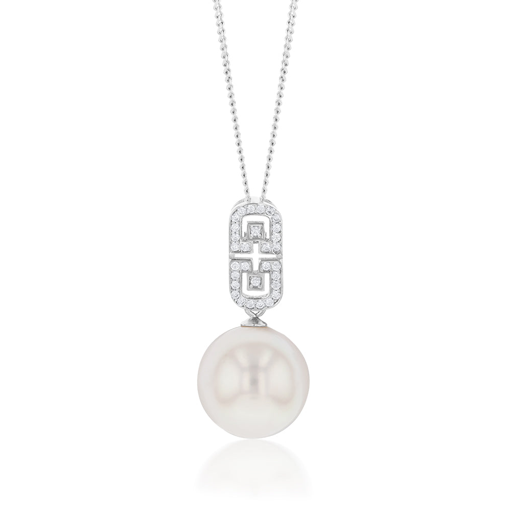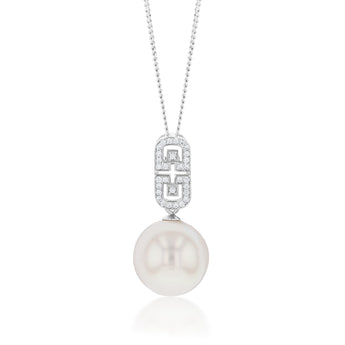 Sterling Silver South Sea Pearl and Zirconia Pendant on Chain "Lola"