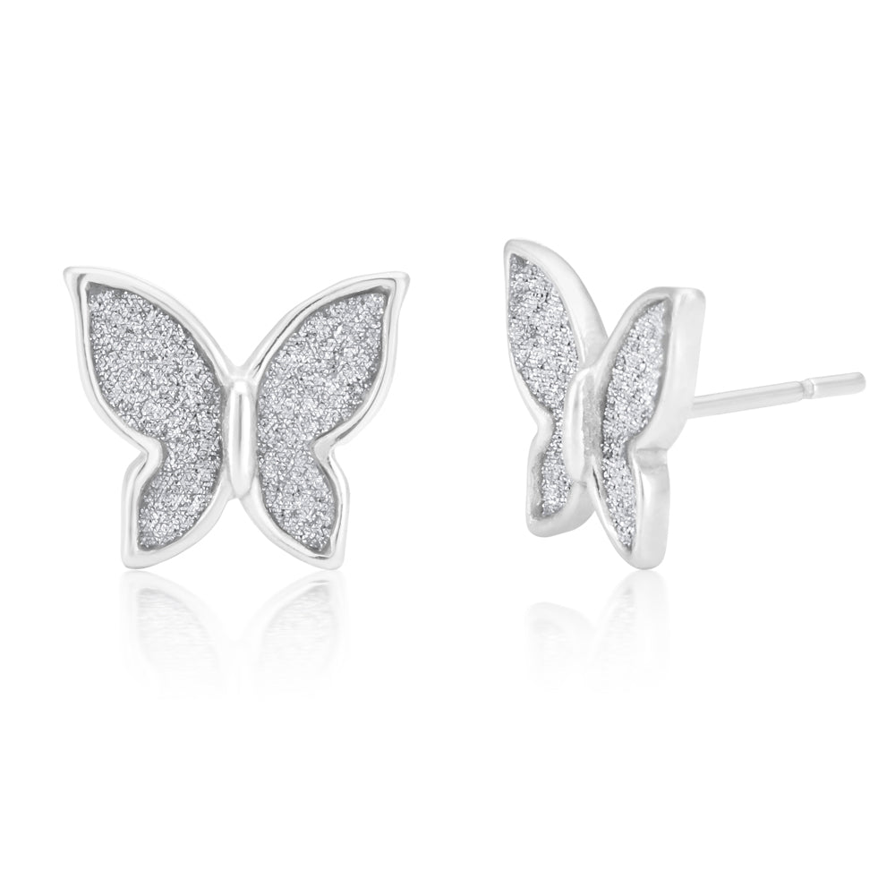 Sterling Silver Stardust Butterfly Stud Earrings Rhodium Plated