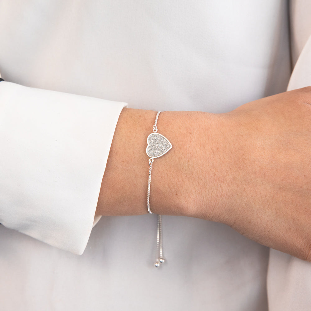Sterling Silver Stardust Heart Charm Slider Bracelet