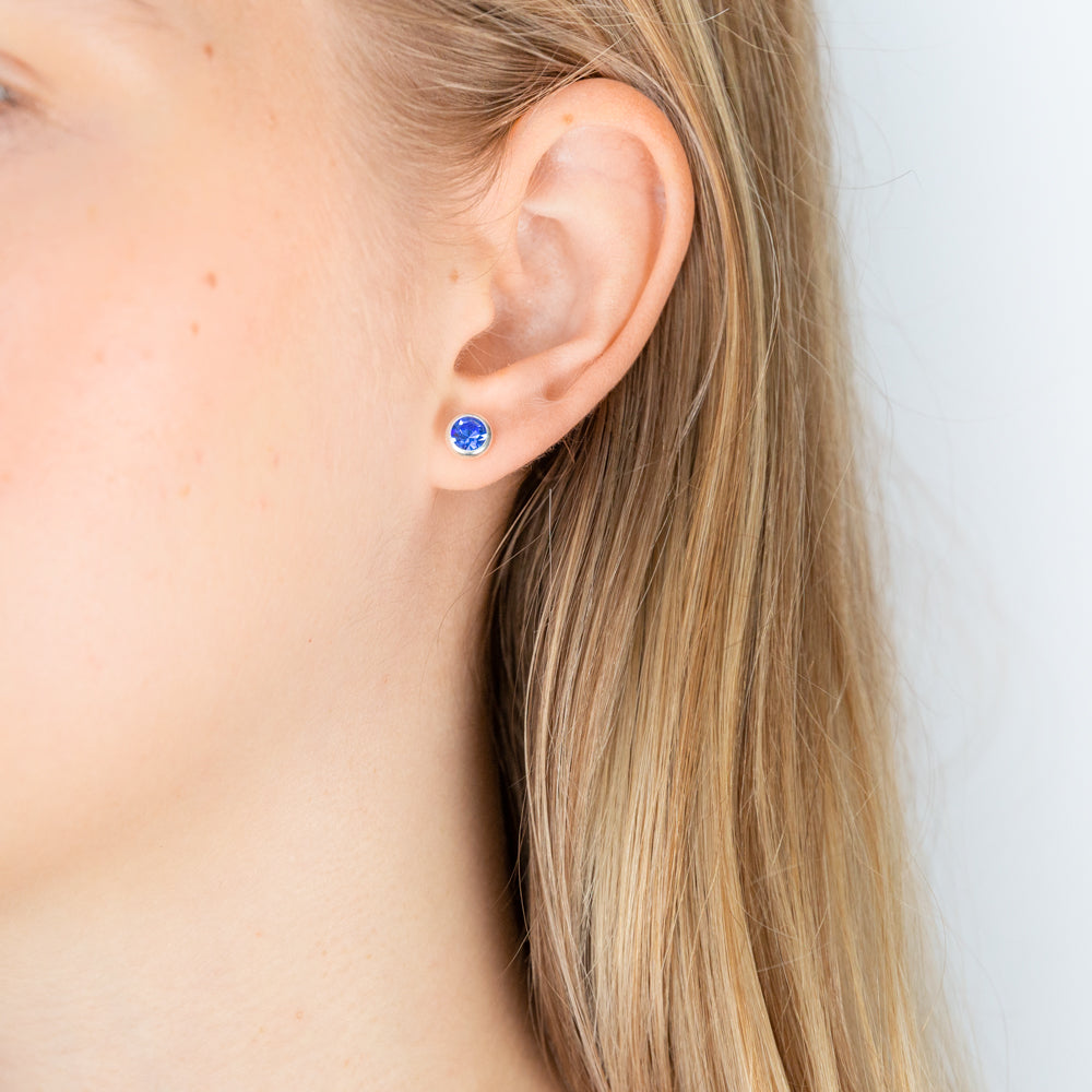 Sterling Silver Swarovski Sapphire Crystal Stud Earrings