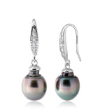 Sterling Silver Tahitian Pearl & Zirconia Drop Earrings