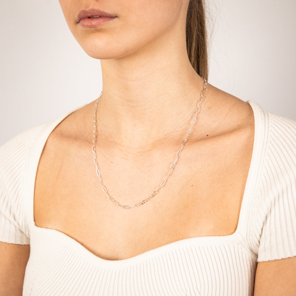 Sterling Silver Textured Paperclip 60 Gauge 50cm Chain