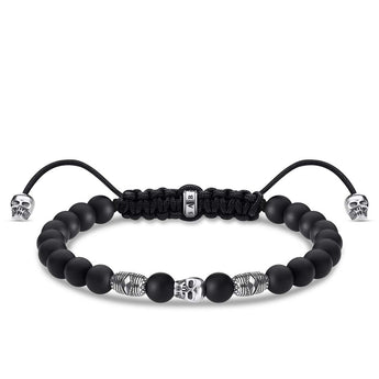 Sterling Silver Thomas Sabo Black Obsidian Adjustable Skull Bracelet