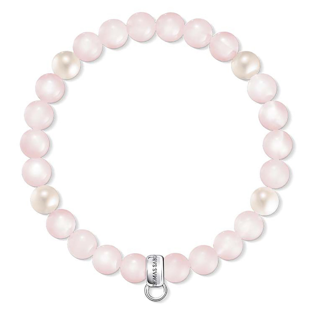 Sterling Silver Thomas Sabo Charm CLub Rose Quartz Pearl Bracelet 16.5cm