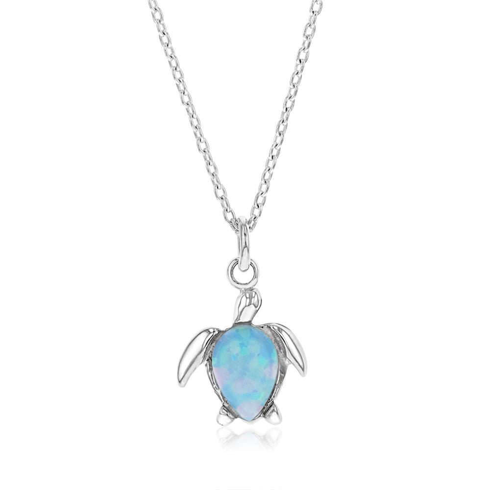 Sterling Silver Turtles Blue Opal Glass Pedant With 45cm Chain