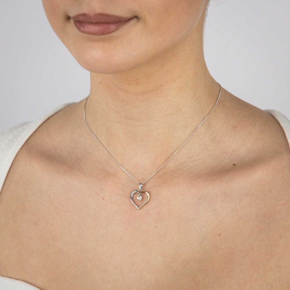Sterling Silver Two Tone Cubic Zirconia Fancy Open Heart Pendant