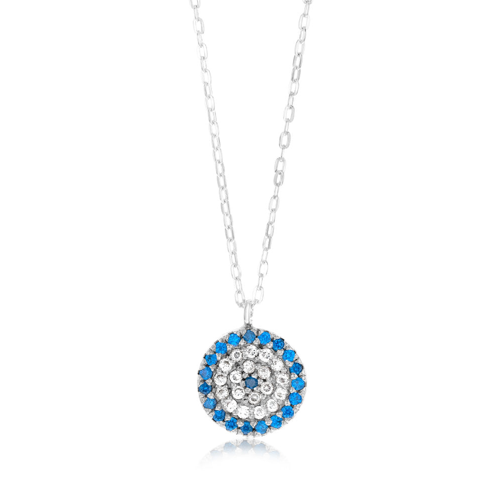 Sterling Silver White And Blue Round Pendant On 45cm Chain