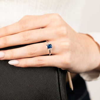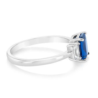 Sterling Silver White And Sapphire Blue Zirconia Fancy Ring