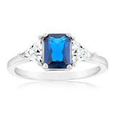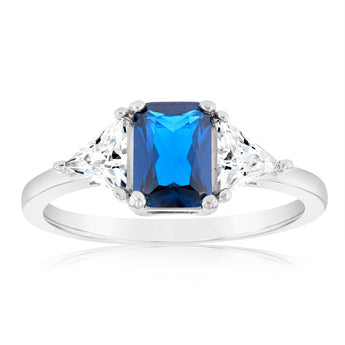 Sterling Silver White And Sapphire Blue Zirconia Fancy Ring