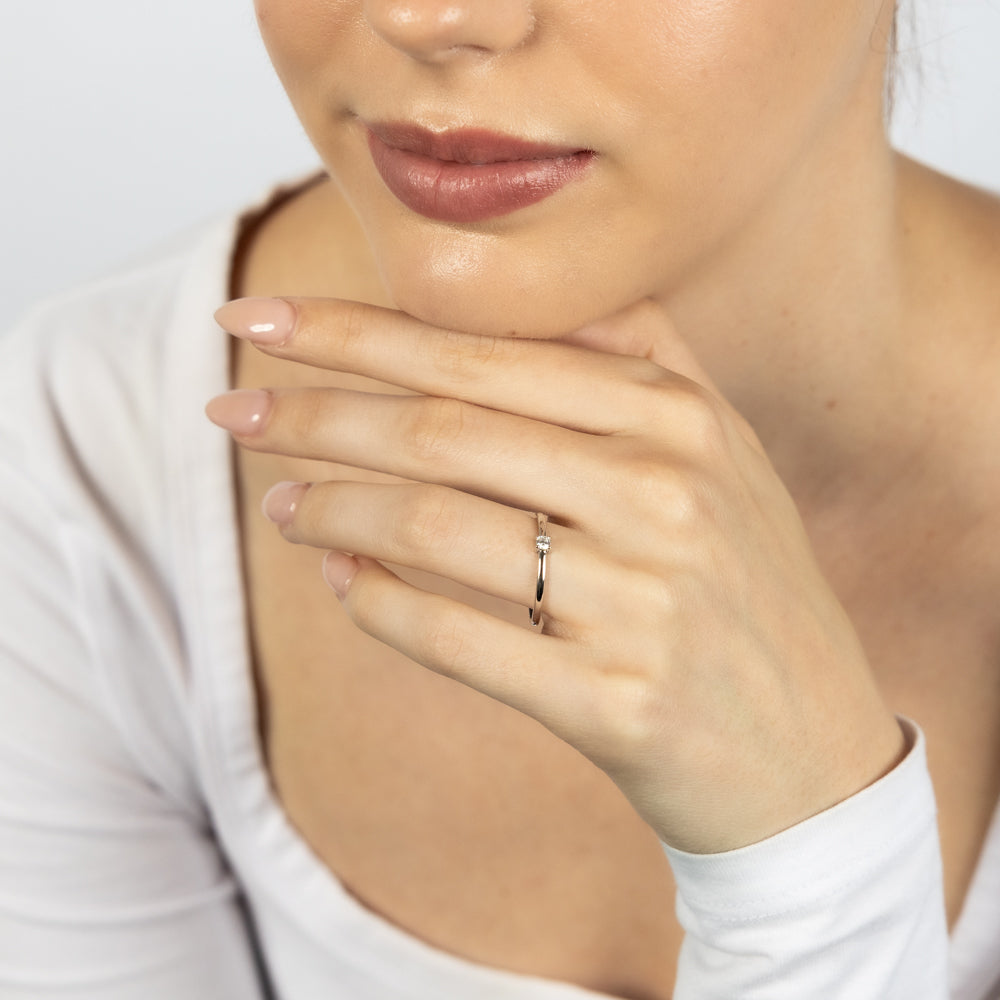 Sterling Silver White Cubic Zirconia 4 Claw Ring