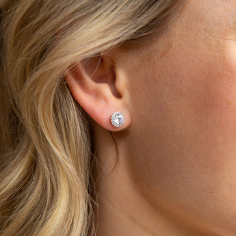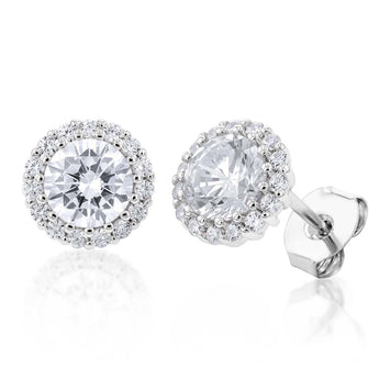 Sterling Silver White Cubic Zirconia Halo 8mm Stud Earrings