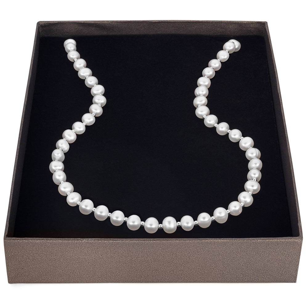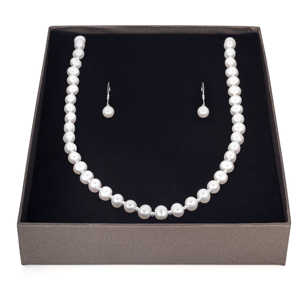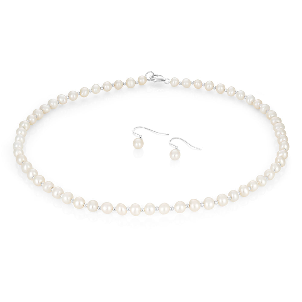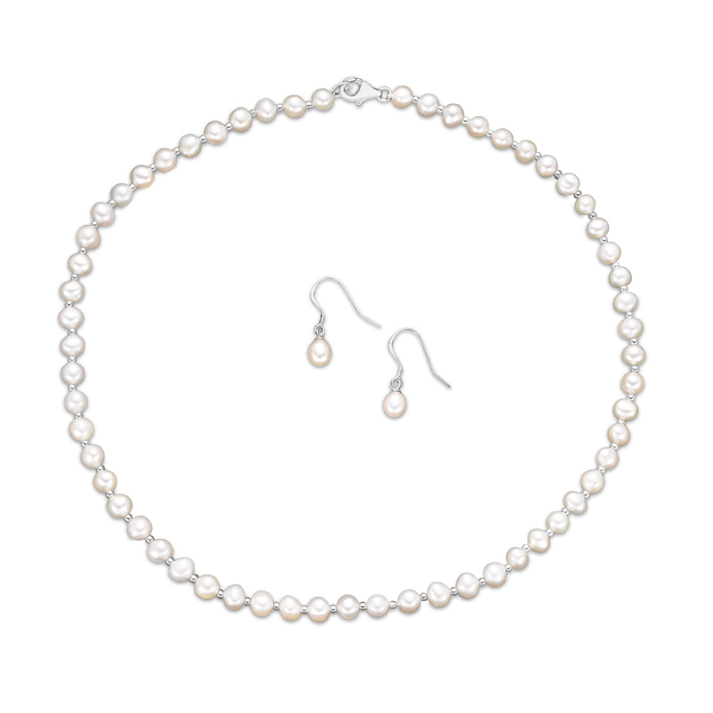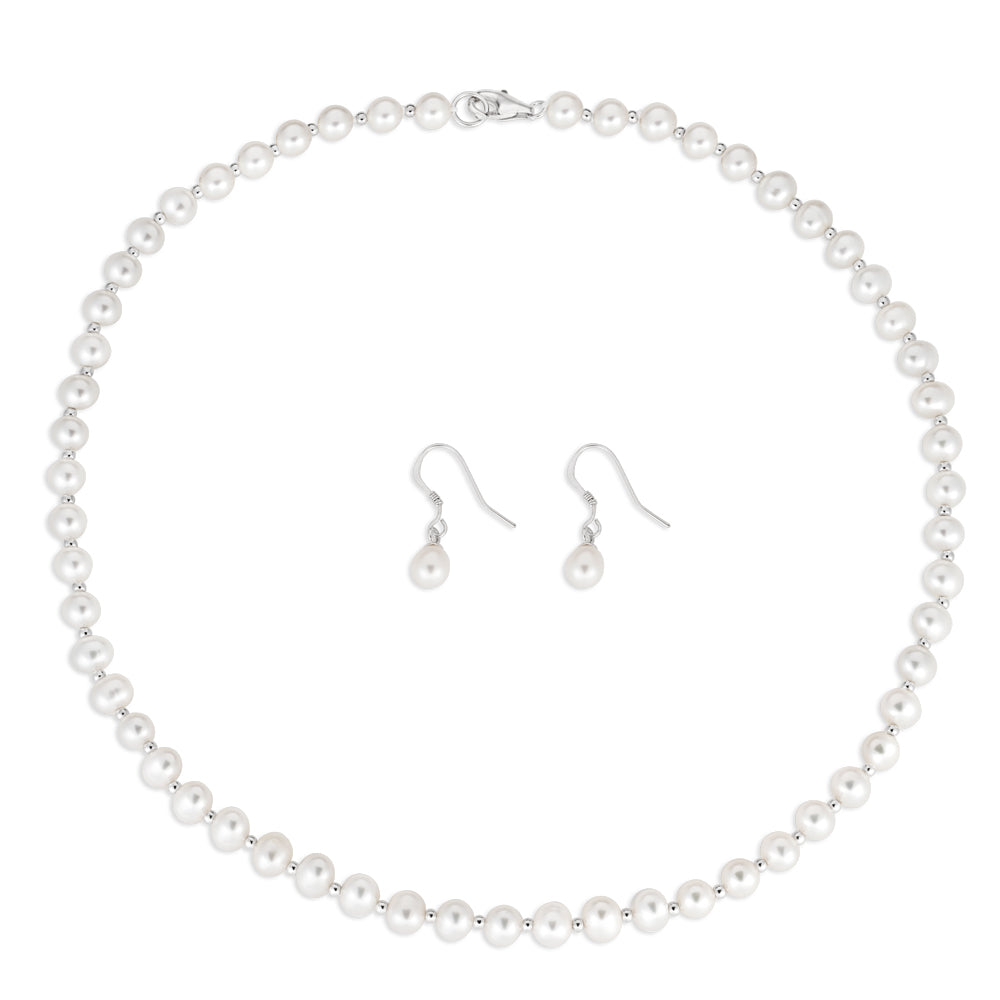 Sterling Silver White Freshwater Pearl Chain & Earring Boxed Set
