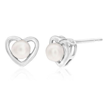 Sterling Silver White Freshwater Pearl Heart Stud Earrings