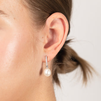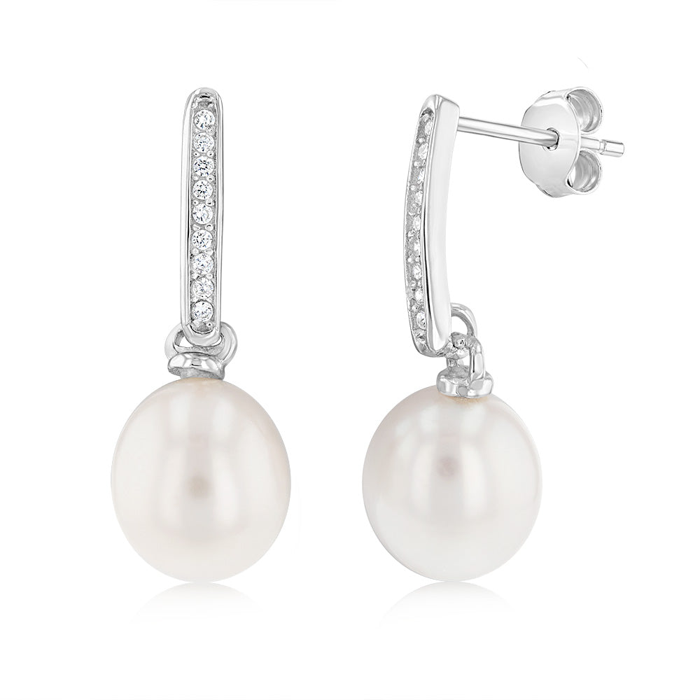 Sterling Silver White Rice Pearl & Cubic Zirconia Stud Earrings