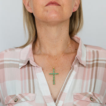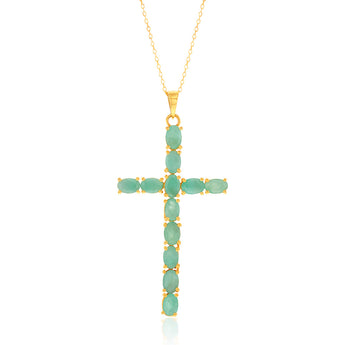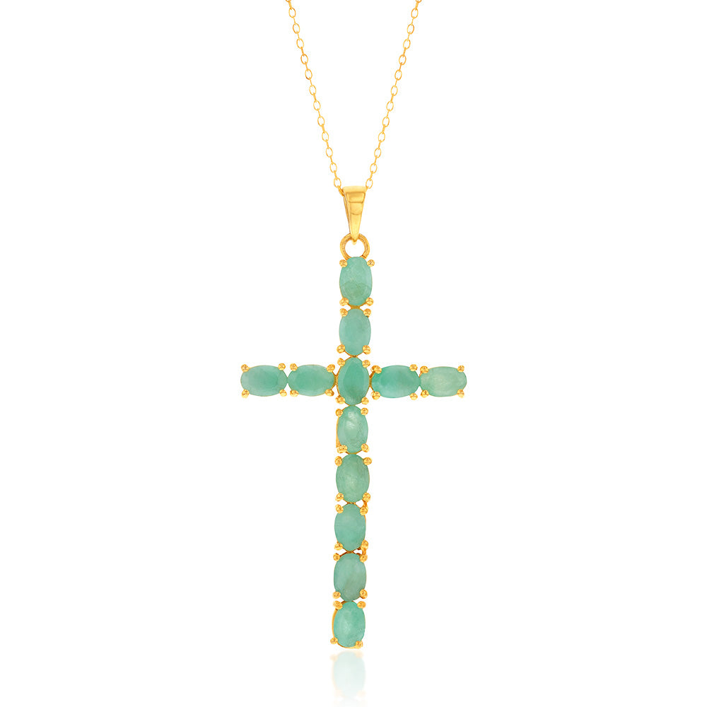 Sterling Silver Yellow Gold Plated 6.00ct Natural Emerald Cross Pendant