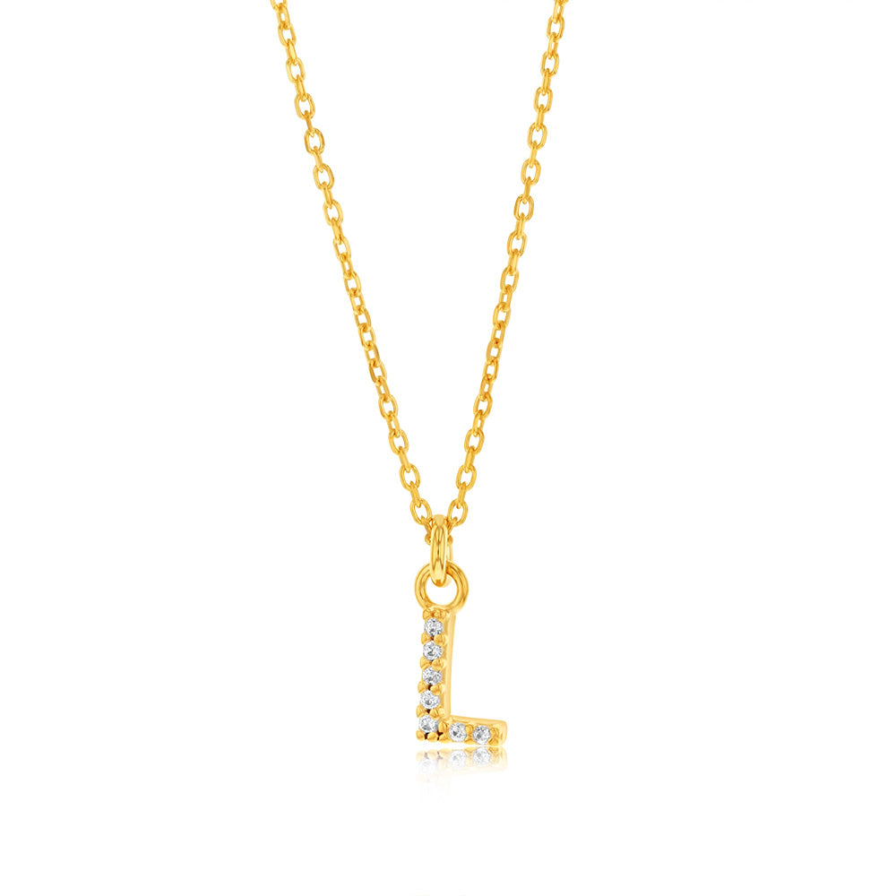 Sterling Silver Yellow Gold Plated Initail "L" Pendant On 45cm Chain