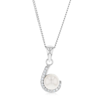 Sterling Silver Zirconia And Simulated Pearl Fancy Pendant