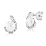 Sterling Silver Zirconia And Simulated Pearl Stud Earrings