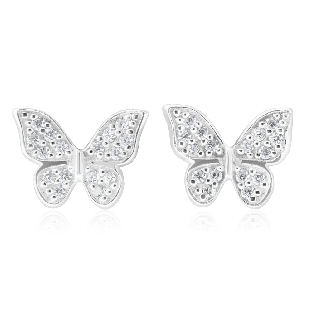 Sterling Silver Zirconia Butterfly Stud Earrings