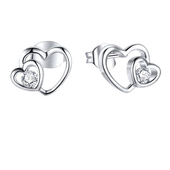 Sterling Silver Zirconia Double Heart Stud Earrings