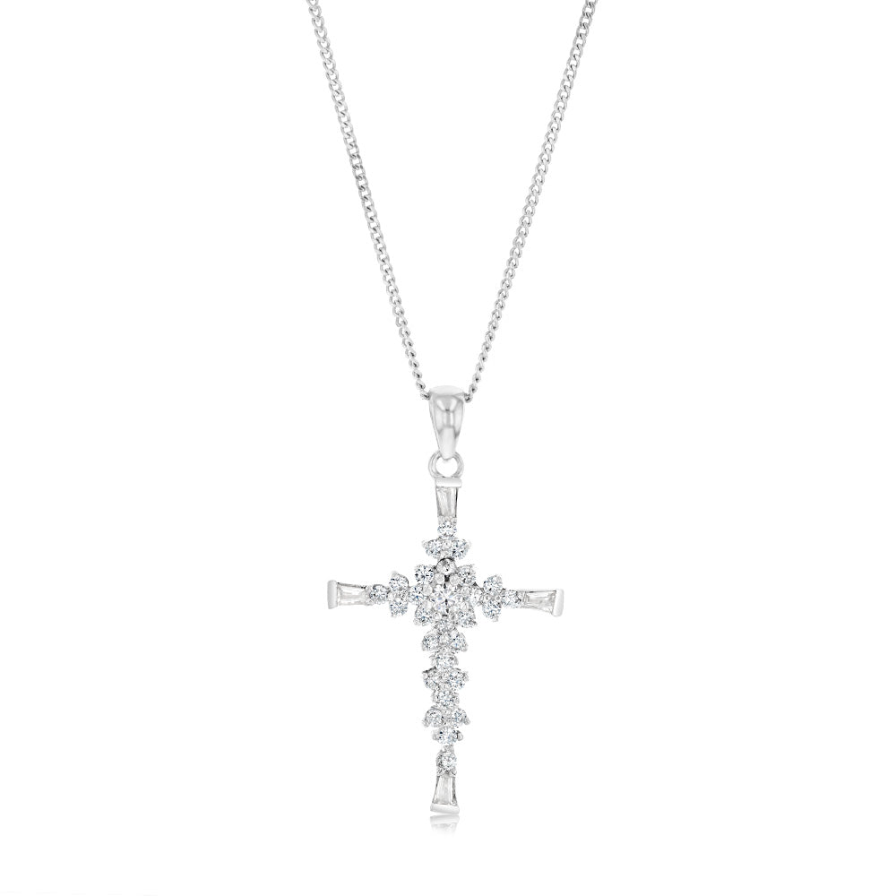 Sterling Silver Zirconia Fancy Cross Pendant