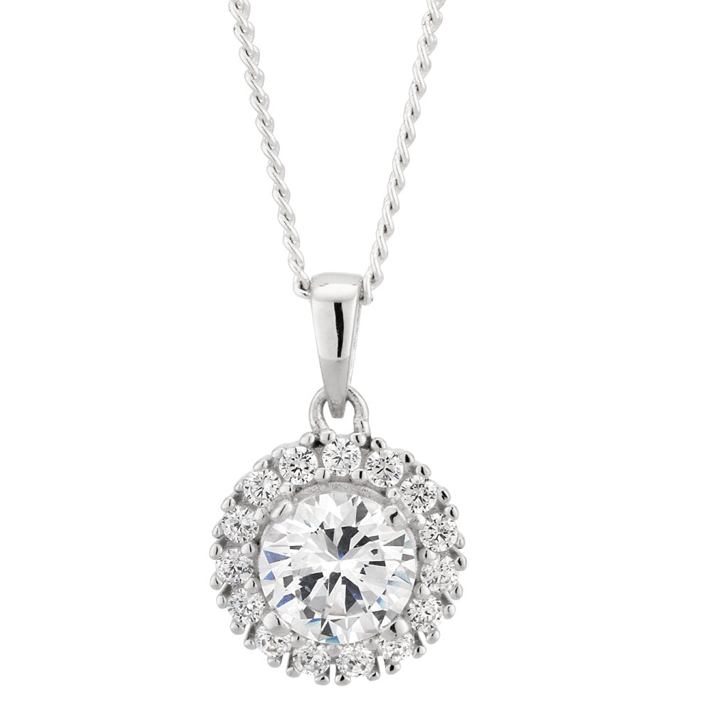 Sterling Silver Zirconia Fancy Round Pendant