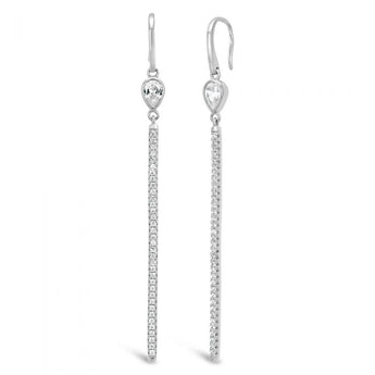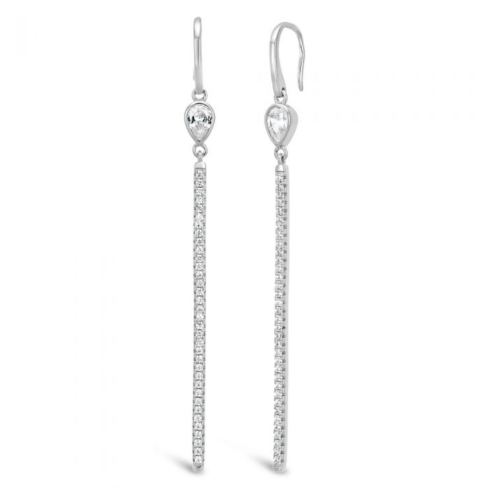 Sterling Silver Zirconia Pear and Bar Drop Earrings