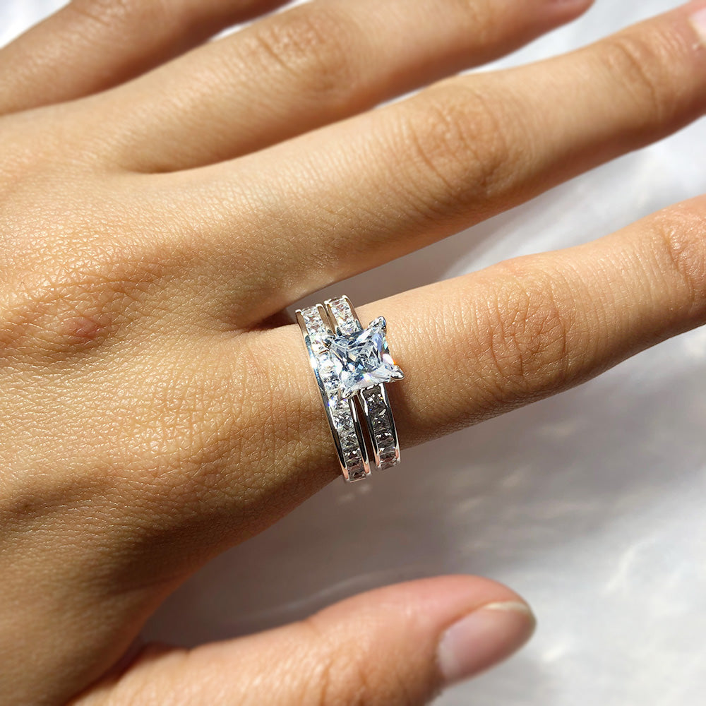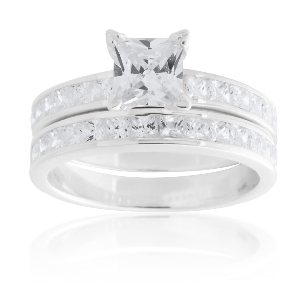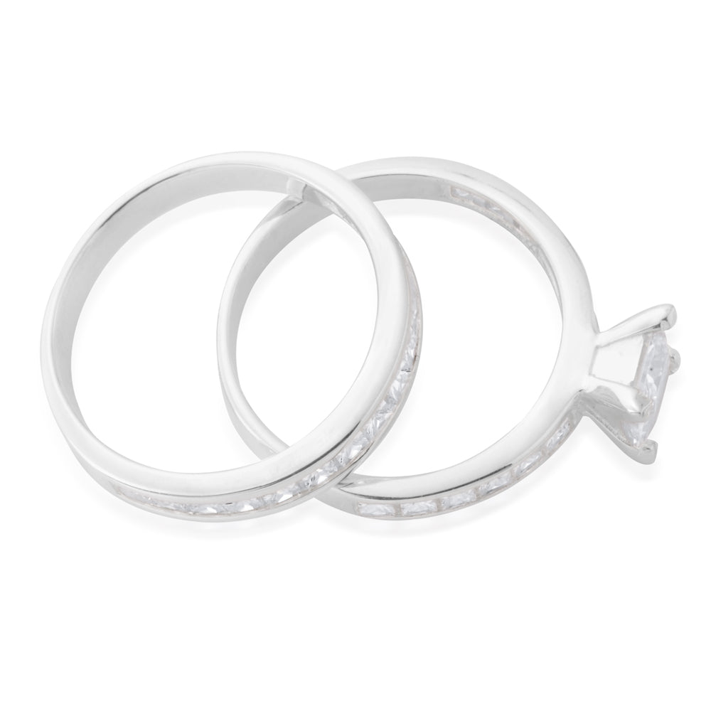 Sterling Silver Zirconia Princess Cut + Round 2 Ring Set