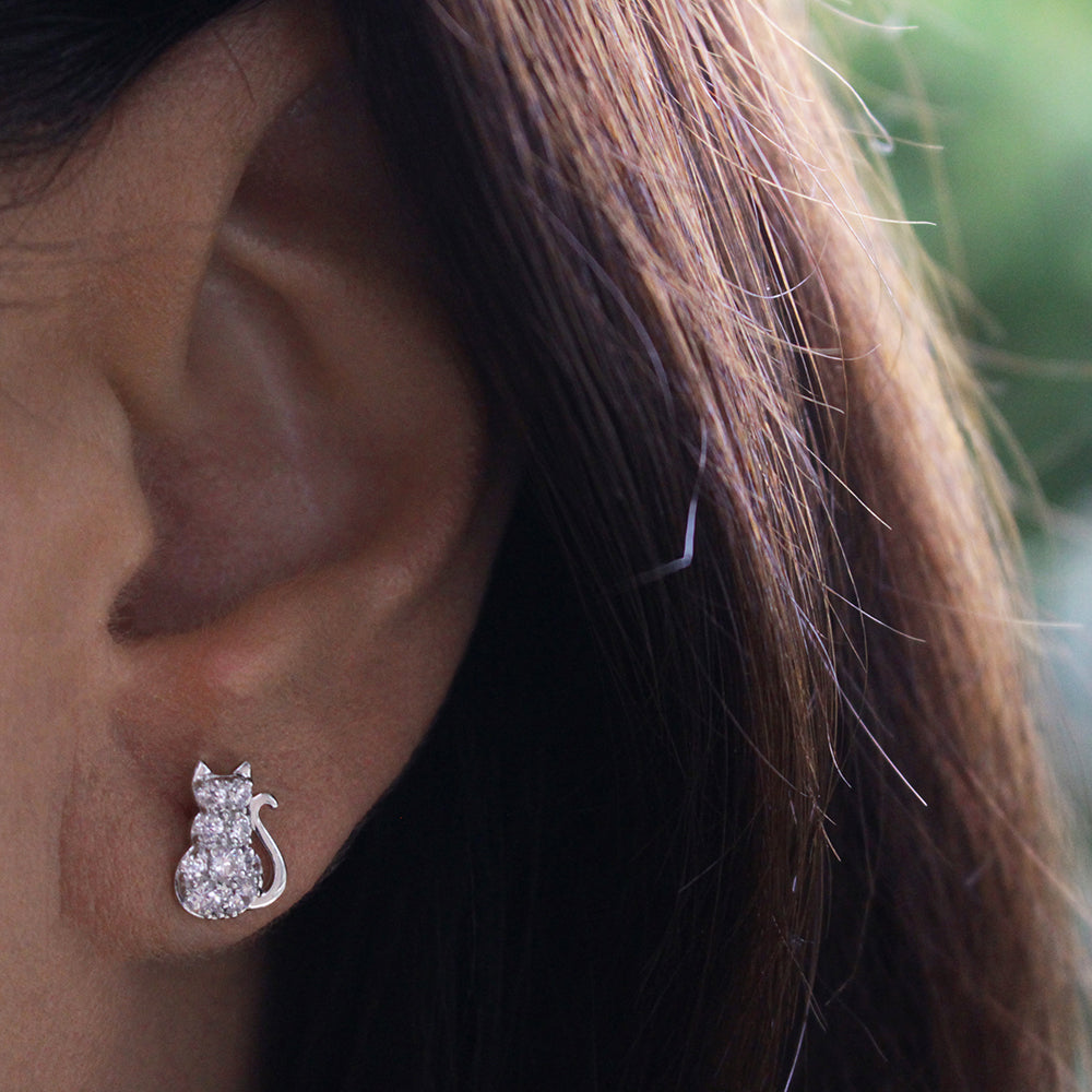 Sterling Silver Zirconia Sitting Cat Earrings