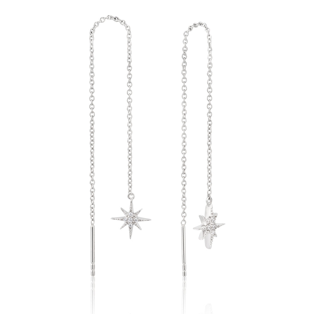 Sterling Silver Zirconia Starburst Threader Earrings