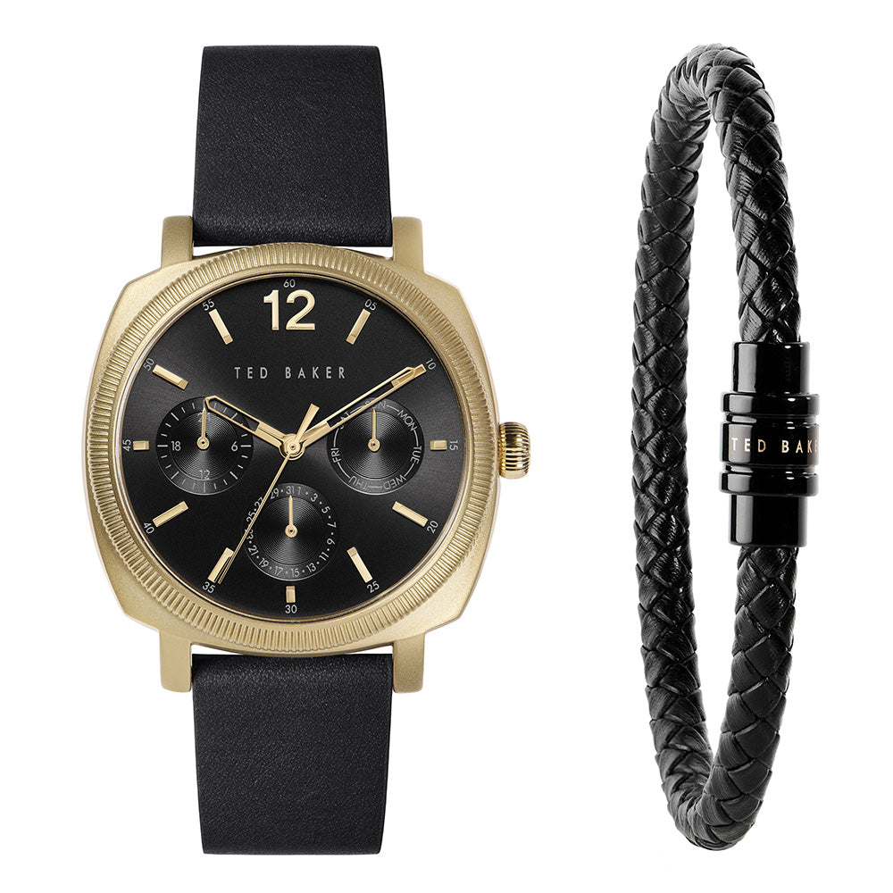 Ted Baker BKGFW2222 Boxset Black Leather Watch and Bracelet