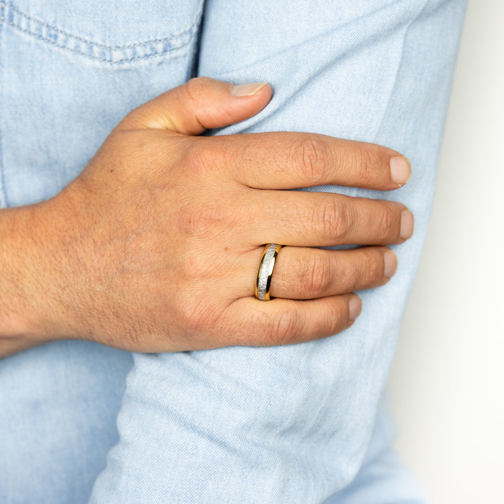 Textured Silver Stripe Gold Polished 6mm Tungsten Ring